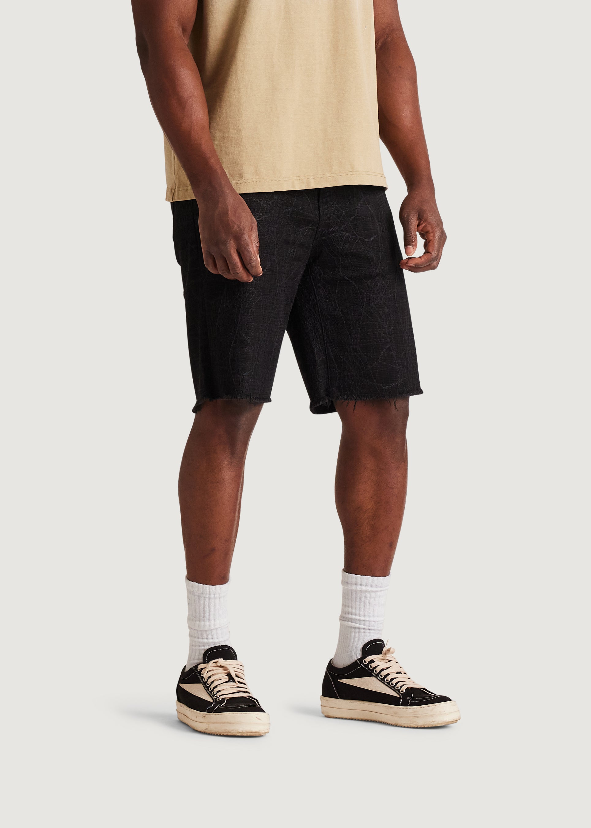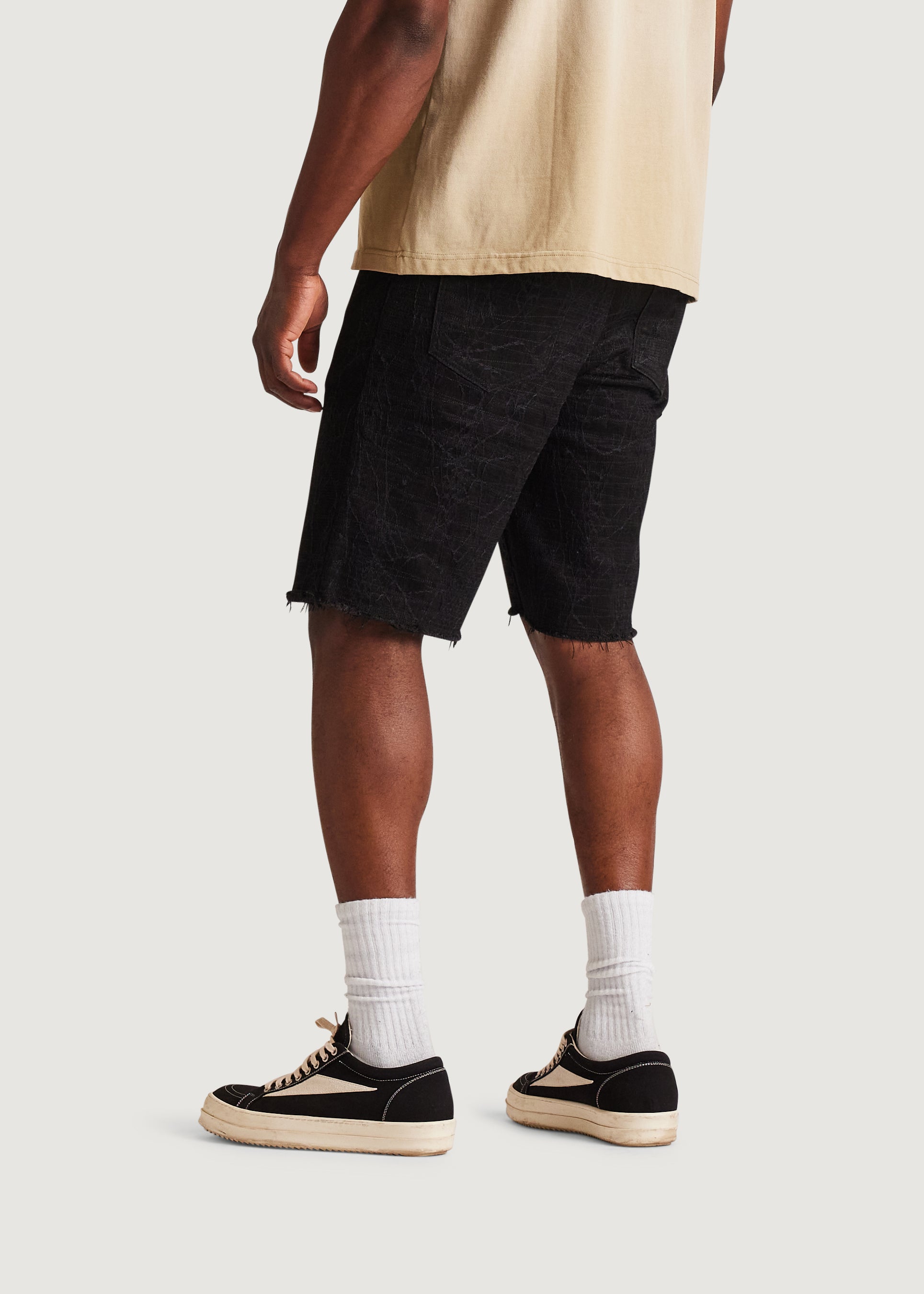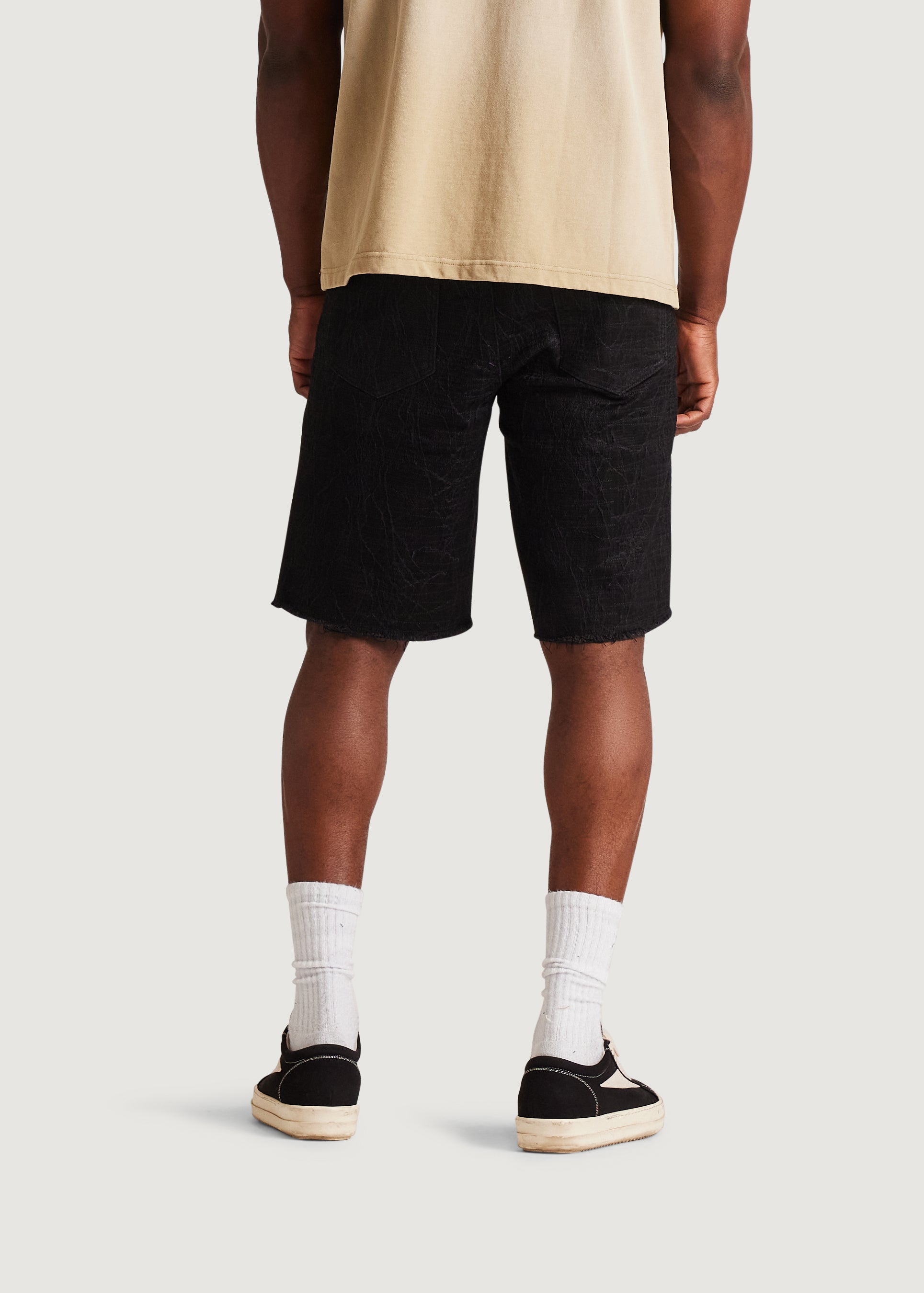 • Black denim shorts