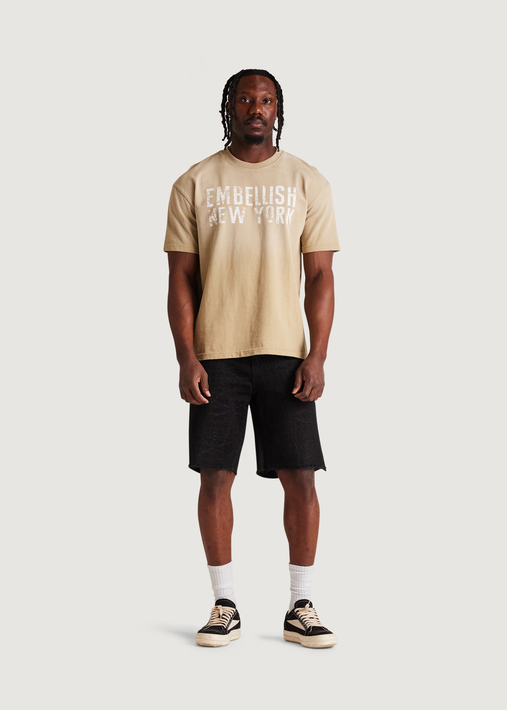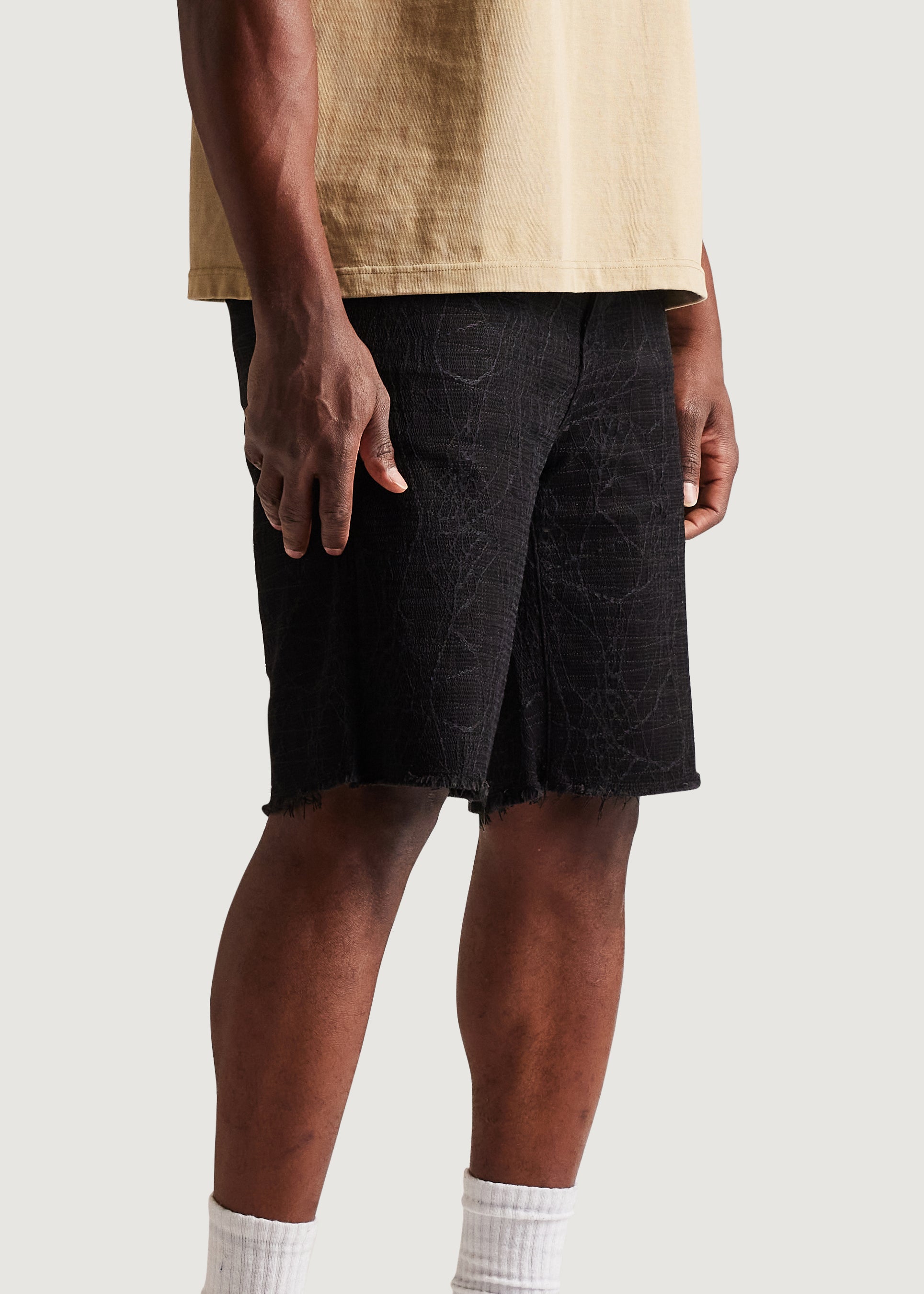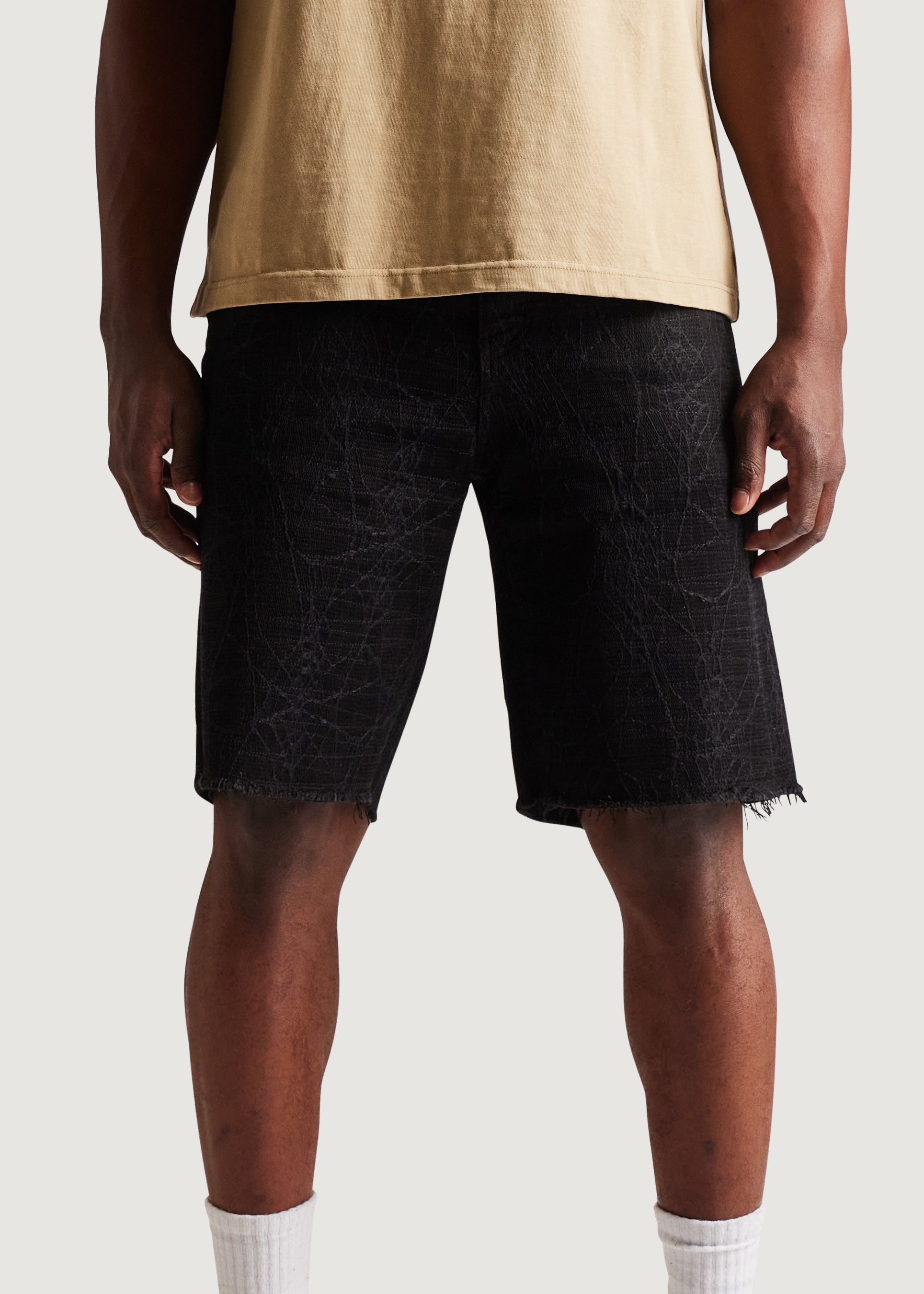 • Black denim shorts