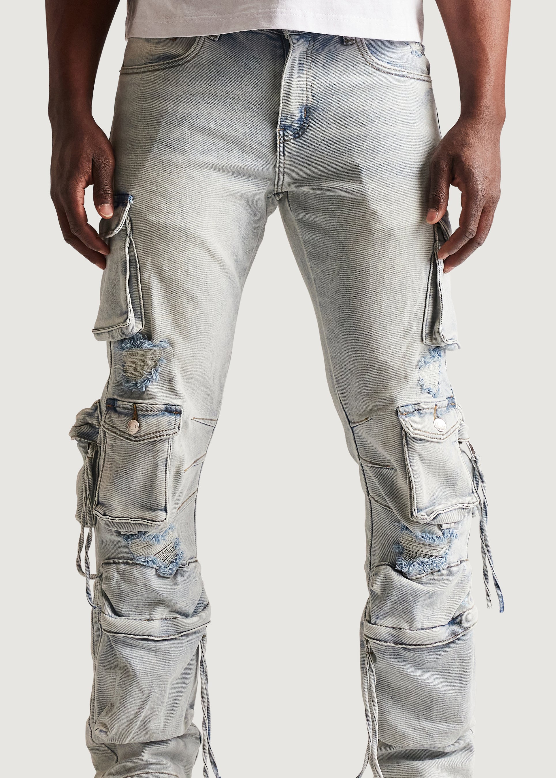 Squadron Slim Straight Cargo Denim (Light Wash)